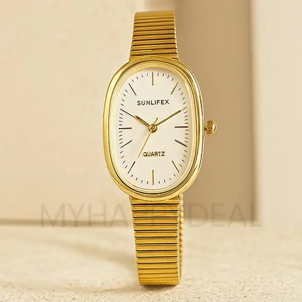SUNLIFEX-এর এই নতুন ডিজাইনের ঘড়িটি ২০২৫ সালের জন্য একটি আভিজাত্যপূর্ণ পছন্দ। গোল্ড IPG কোটিং এবং স্টেইনলেস স্টিল বডি ঘড়িটিকে দেয় টেকসই ও প্রিমিয়াম ফিনিশ। এটি জলরোধী এবং আছে ১ বছরের ওয়ারেন্টি সহ। প্রতিদিনের ব্যবহার কিংবা স্টাইলিশ লুক—দুই ক্ষেত্রেই এটি হবে আদর্শ একটি ঘড়ি ।